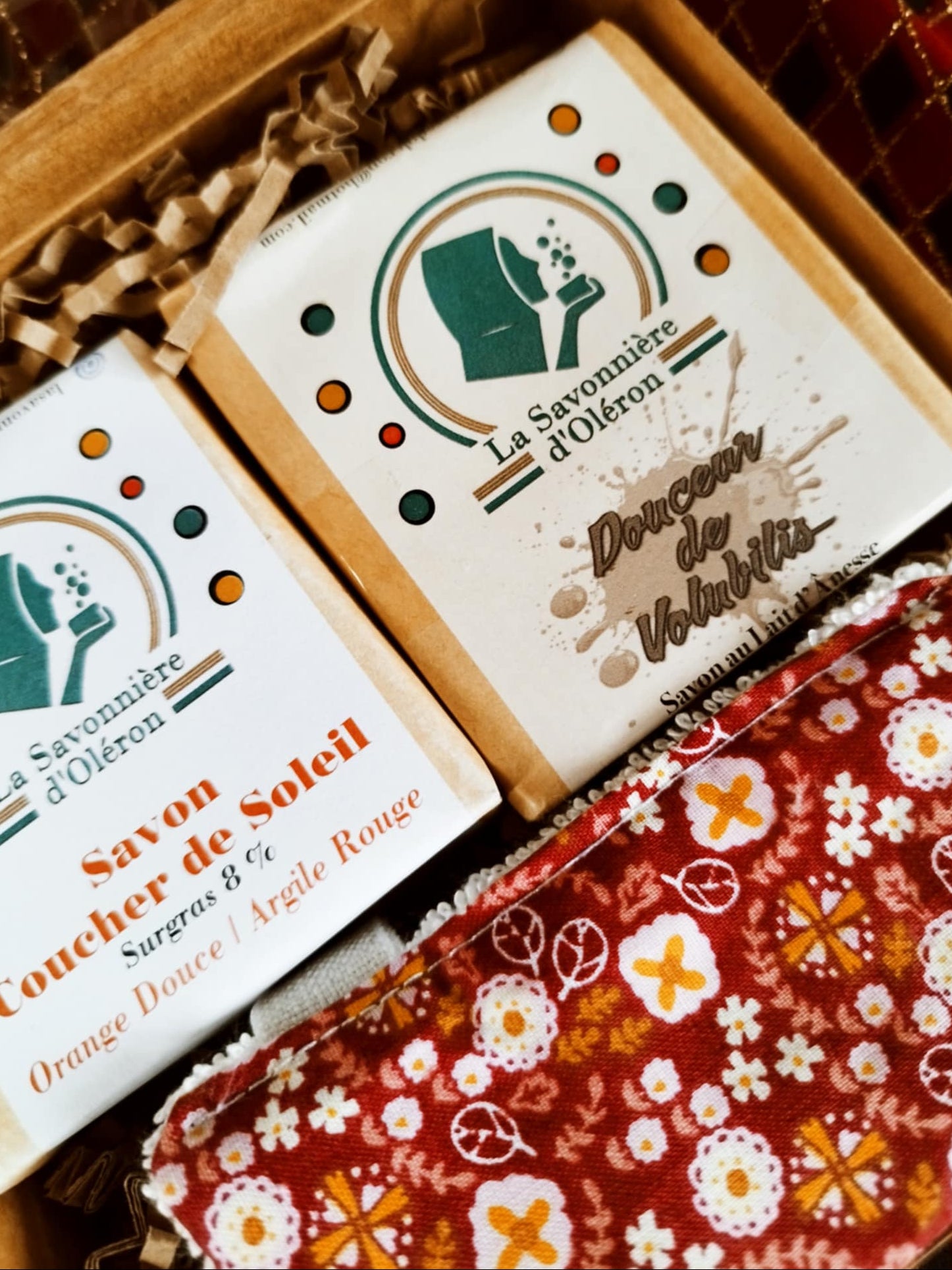 Coffret de Noël artisanal avec savons naturels et lingette lavable – La Savonnière d’Oléron